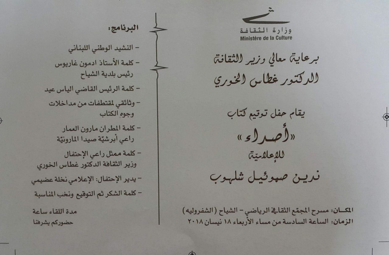 غري-ندين ميديا – سياسة – 4 نيسان 2018 دعوة لحضور احتفال توقيع كتاب اصداء