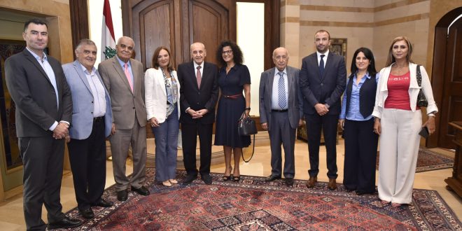 الرئيس بري يلتقي رئيسة واعضاء جمعية الاعلاميين الاقتصاديين في لبنان .